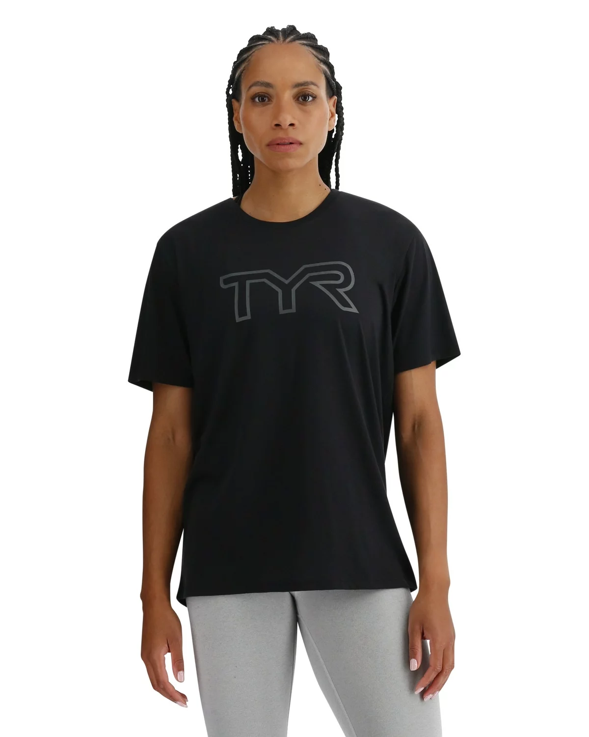 The TYR Women’s Ultrasoft Tri Blend Tech Tee – Big Logo takes you from the gym to the pavement seamlessly.